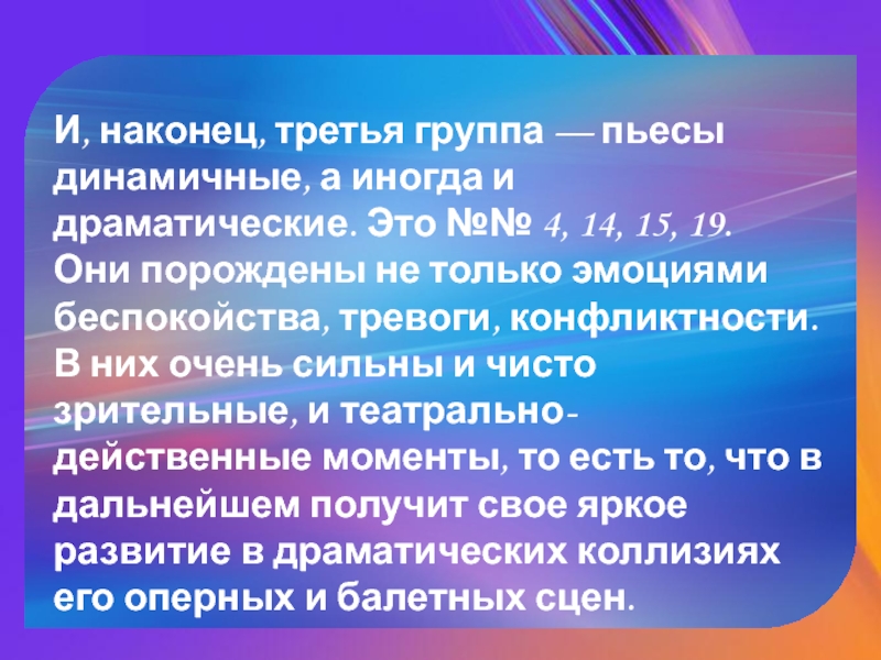 Слайд 8И, наконец, третья группа — пьесы динамичные, а иногда и драматические.
