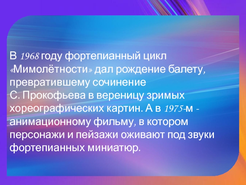 Слайд 10В 1968 году фортепианный цикл «Мимолётности» дал рождение балету, превратившему сочинение