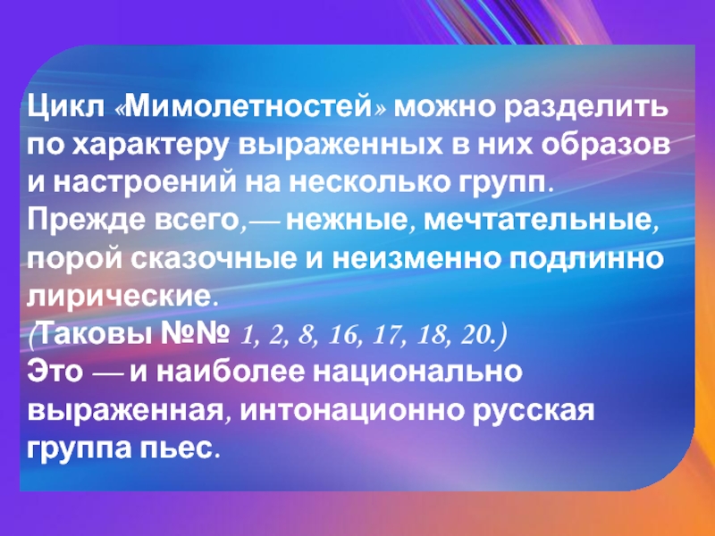 Слайд 6Цикл «Мимолетностей» можно разделить по характеру выраженных в них образов и