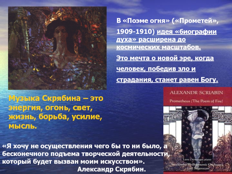 «Я хочу не осуществления чего бы то ни было, а бесконечного подъема творческой деятельности, который будет вызван моим искусством».