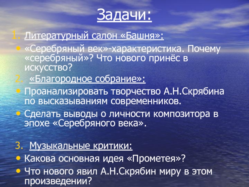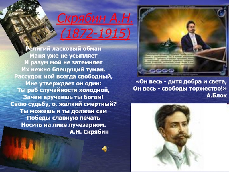 Освоив миросозерцание символистов, он утвердился в магической силе музыки, призванной спасти мир.