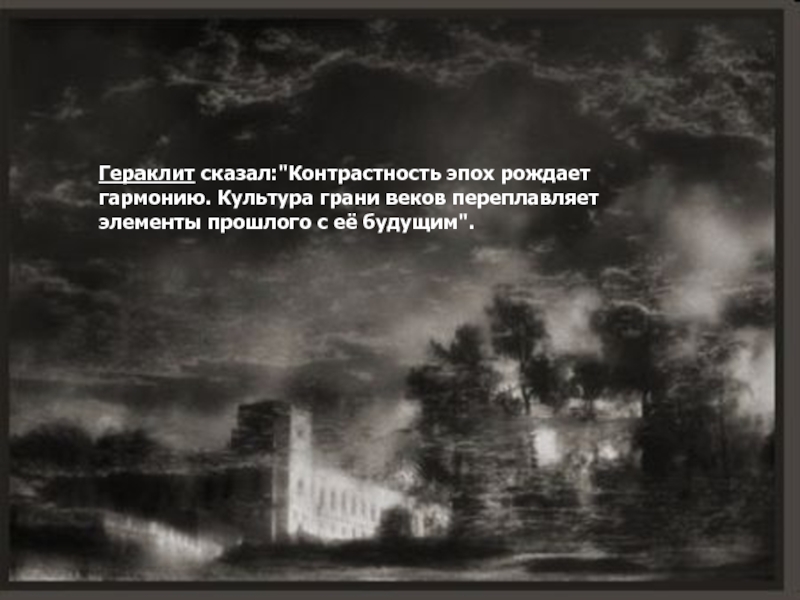 Гераклит сказал:"Контрастность эпох рождает гармонию. Культура грани веков переплавляет элементы прошлого с её будущим".