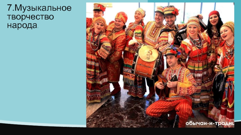 Слайд 43. Коллектив музыкантов играющих на народных инструментах.