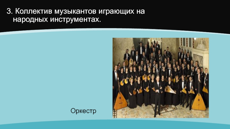 3. Коллектив музыкантов играющих на    народных инструментах.Оркестр