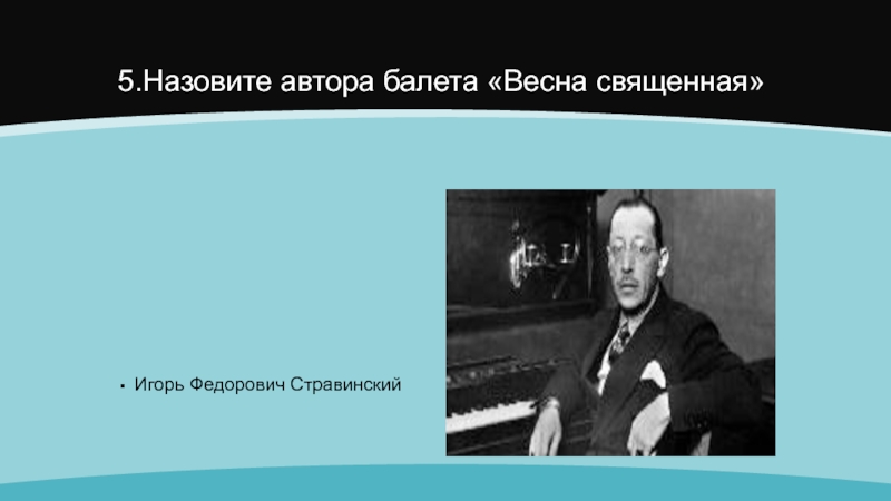 5.Назовите автора балета «Весна священная»Игорь Федорович Стравинский