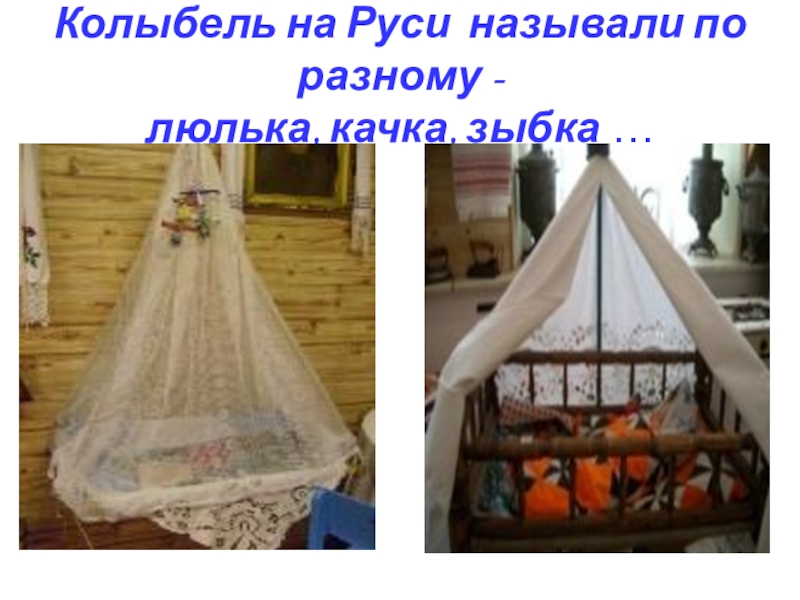 Слайд 4Колыбель на Руси называли по разному - люлька, качка, зыбка …