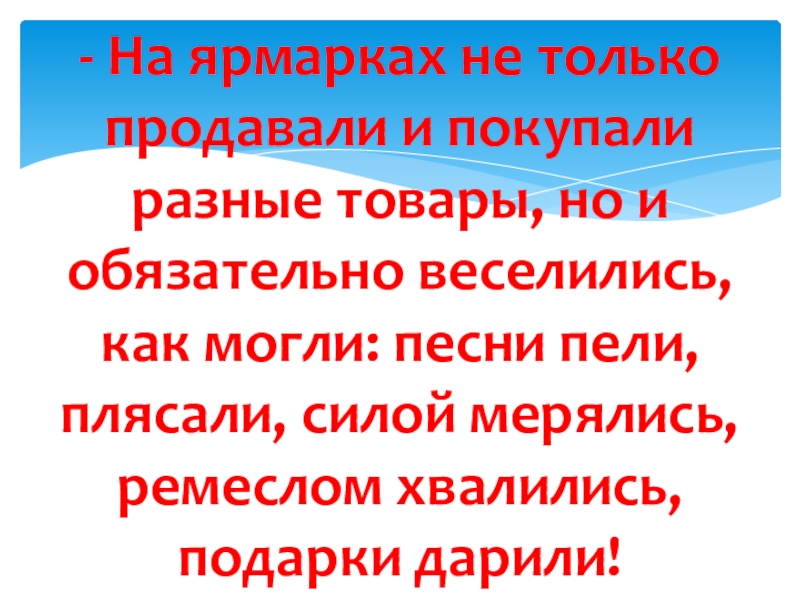 Слайд 4- На ярмарках не только продавали и покупали разные товары, но