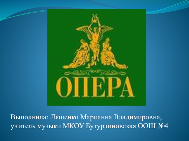 Слайд 1Выполнила: Ляшенко Марианна Владимировна, учитель музыки МКОУ Бутурлиновская ООШ №4