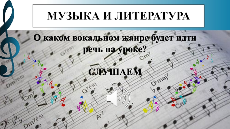 Музыка и литератураО каком вокальном жанре будет идти речь на уроке?СЛУШАЕМ