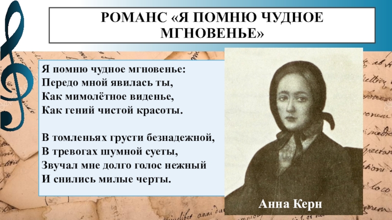 РОМАНС «я помню чудное мгновенье»Анна Керн