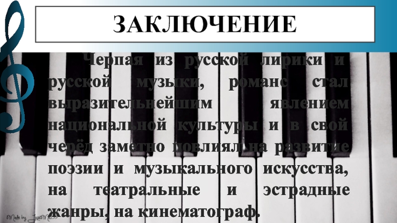 заключение   Черпая из русской лирики и русской музыки, романс стал выразительнейшим явлением национальной культуры и