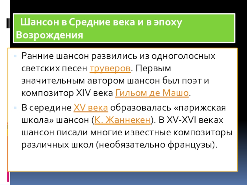 Слайд 6 Шансон в Средние века и в эпоху