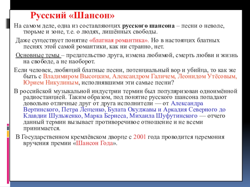 Слайд 21 Русский «Шансон»