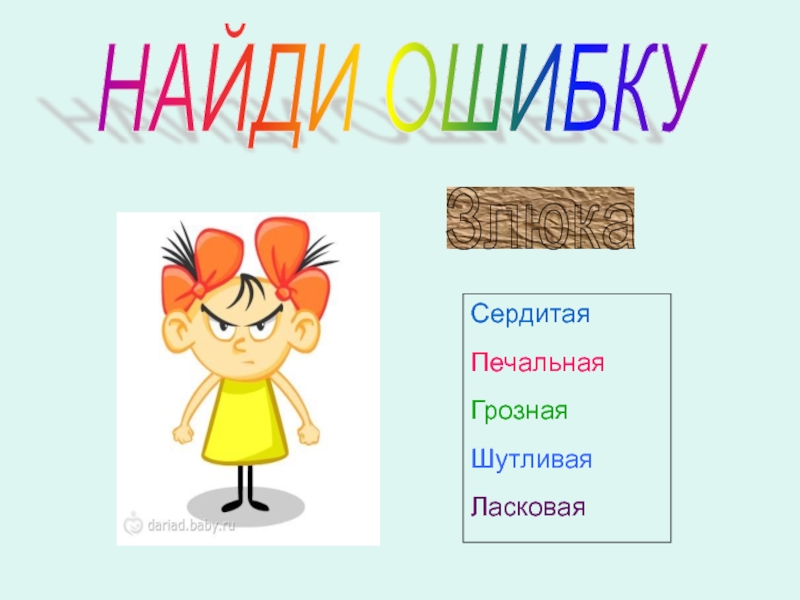 Злюка СердитаяПечальнаяГрознаяШутливаяЛасковаяНАЙДИ ОШИБКУ