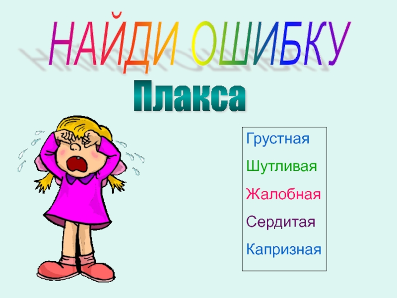 Плакса ГрустнаяШутливаяЖалобнаяСердитаяКапризнаяНАЙДИ ОШИБКУ
