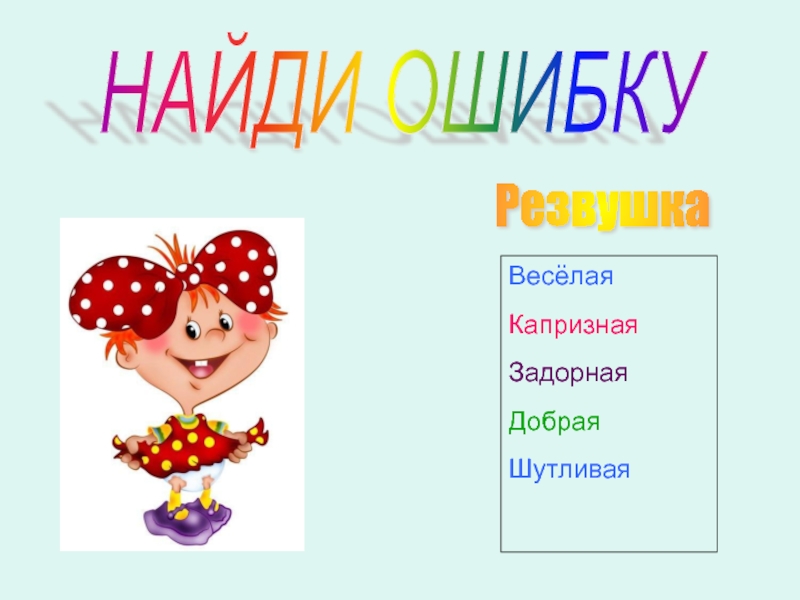 Резвушка ВесёлаяКапризнаяЗадорнаяДобраяШутливаяНАЙДИ ОШИБКУ