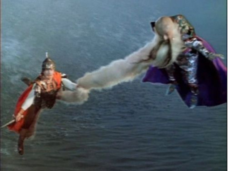 Поиски приводят Руслана в зловещее пустынное место. Он видит поле, усеянное костями павших воинов и оружием. Туман рассеивается, и перед Русланом возникают очертания огромной Головы. Она начинает дуть навстречу витязю, поднимается буря. Но, пораженная копьем Руслана, Голова откатывается, и под ней обнаруживается меч. Голова рассказывает Руслану историю двух братьев — великана и карлика Черномора. Карлик хитростью одолел своего брата и, отрубив ему голову, заставил ее сторожить волшебный меч. Отдавая меч Руслану, Голова просит отомстить злому Черномору.