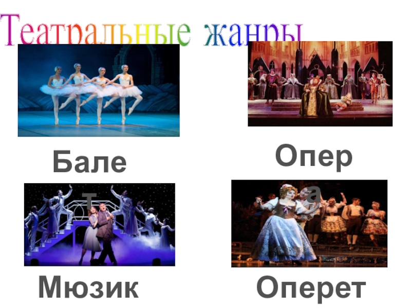 Театральные жанрыБалетОпераМюзиклОперетта