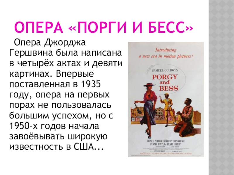 Презентация, доклад к уроку по музыке Опера Дж. Гершвина Порги и Бесс 7 класс