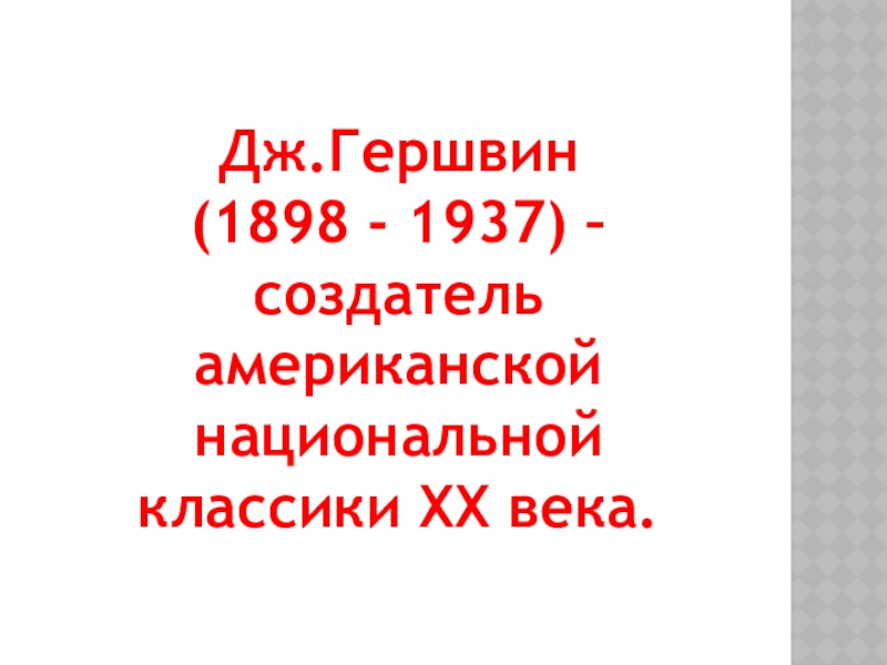 Дж.Гершвин (1898 - 1937) – создатель американской национальной классики XX века.