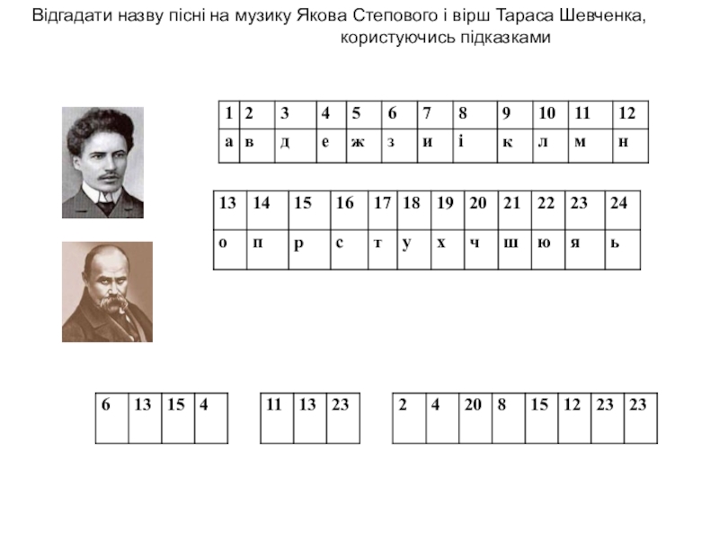Відгадати назву пісні на музику Якова Степового і вірш Тараса Шевченка,