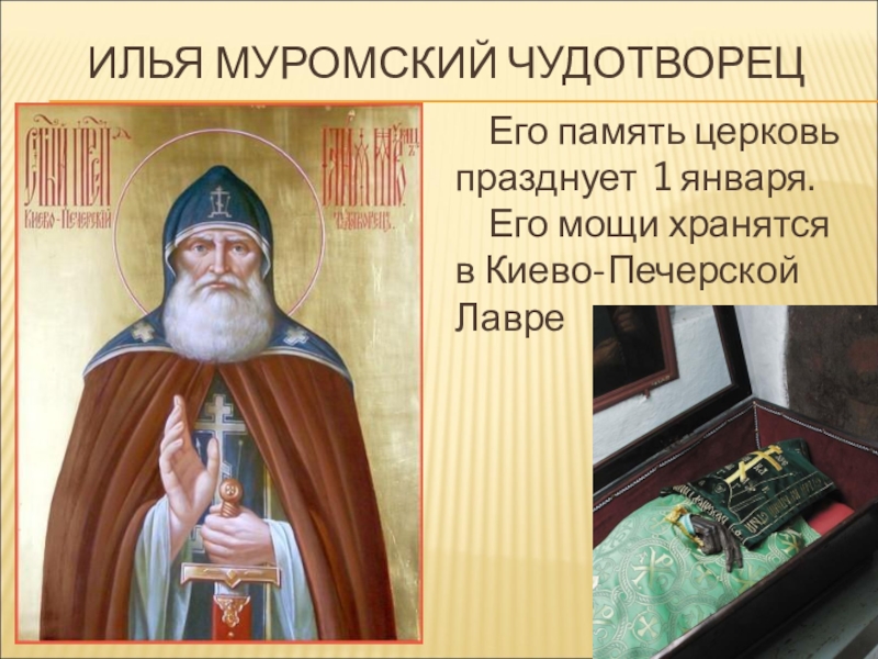 Слайд 21ИЛЬЯ МУРОМСКИЙ ЧУДОТВОРЕЦ