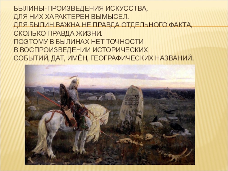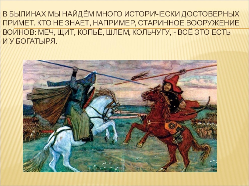 Слайд 17В БЫЛИНАХ МЫ НАЙДЁМ МНОГО ИСТОРИЧЕСКИ ДОСТОВЕРНЫХ