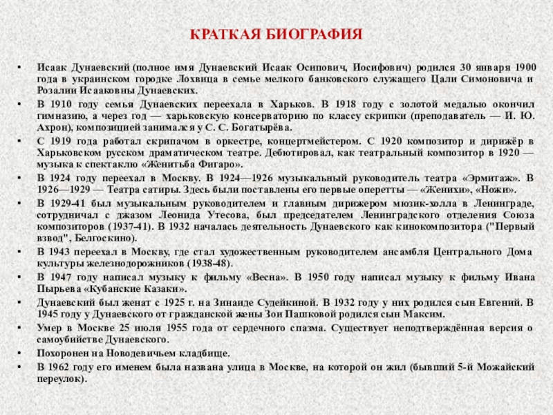 ИСААК ДУНАЕВСКИЙ – КРАСНЫЙ МОЦАРТ
