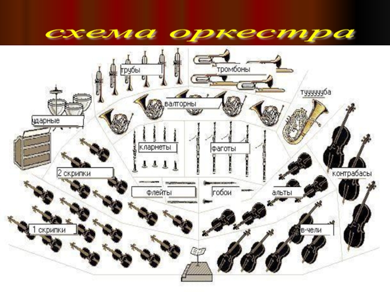 Из каких групп состоит симфонический оркестр?  Какие инструменты  входят в состав симфонического оркестра?
