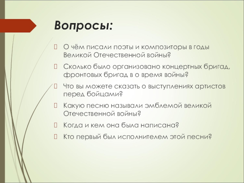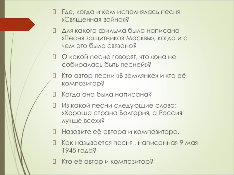 Слайд 48Где, когда и кем исполнялась песня «Священная война»?