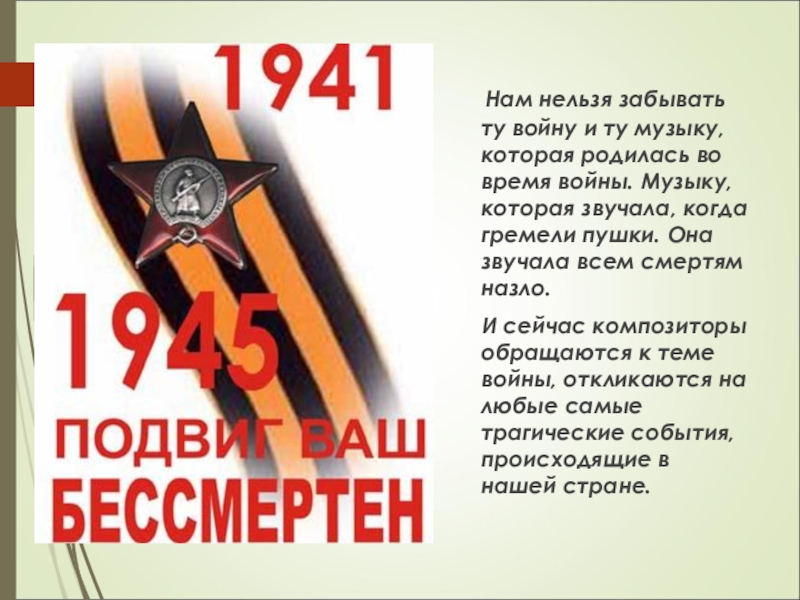 Слайд 45 Нам нельзя забывать ту войну и ту музыку, которая