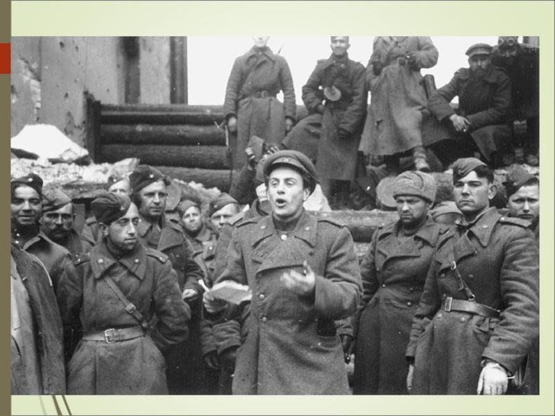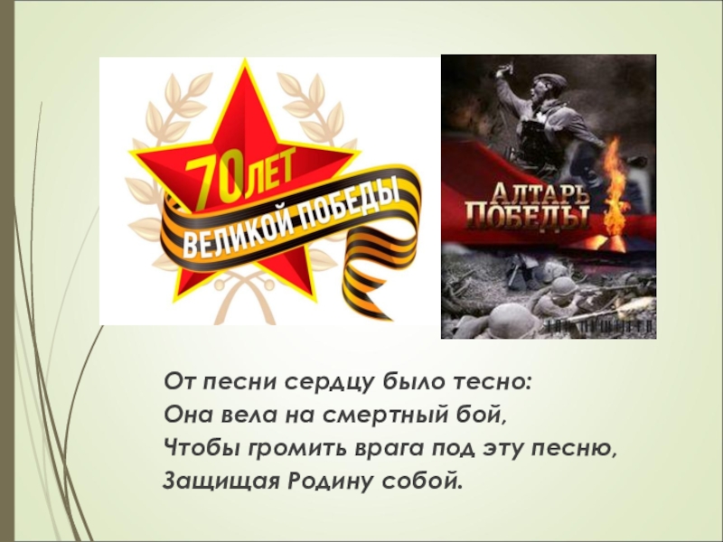 Слайд 33Песня родилась в последние месяцы Великой Отечественной Войны. «Наши воины сражались