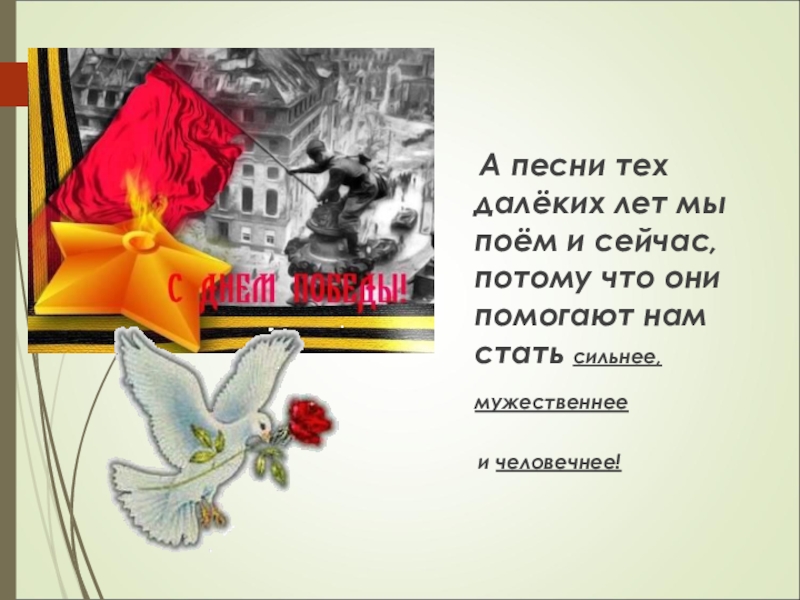 Слайд 46 А песни тех далёких лет мы поём и сейчас,