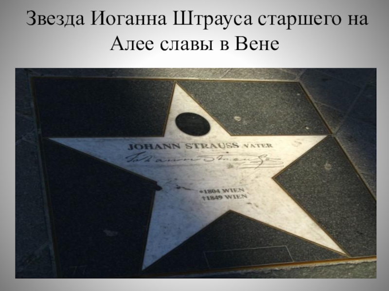 Слайд 5Звезда Иоганна Штрауса старшего на Алее славы в Вене