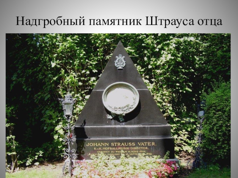 Слайд 10Надгробный памятник Штрауса отца