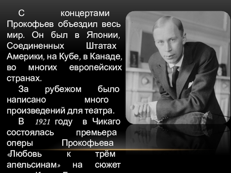 Слайд 10 С концертами Прокофьев объездил весь мир. Он был в Японии, Соединенных