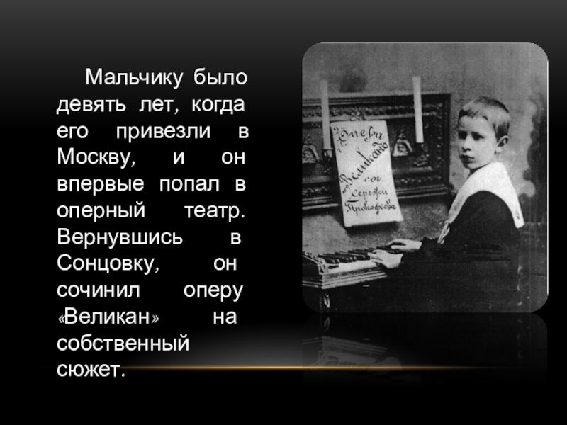 Слайд 3 Мальчику было девять лет, когда его привезли в Москву, и он