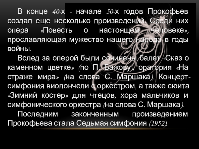 Слайд 15 В конце 40-х - начале 50-х годов Прокофьев создал еще несколько