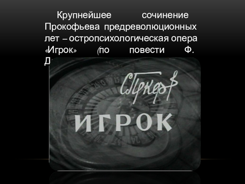 Слайд 9 Крупнейшее сочинение Прокофьева предреволюционных лет – остропсихологическая опера «Игрок» (по повести