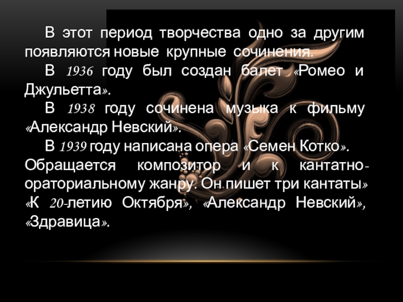 В 1938 году сочинена музыка к фильму «Александр Невский».
