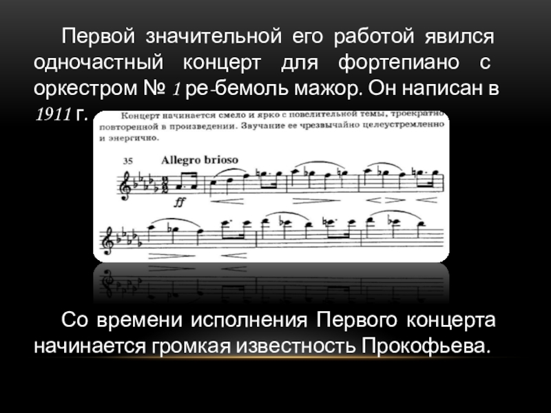 Со времени исполнения Первого концерта начинается громкая известность Прокофьева.