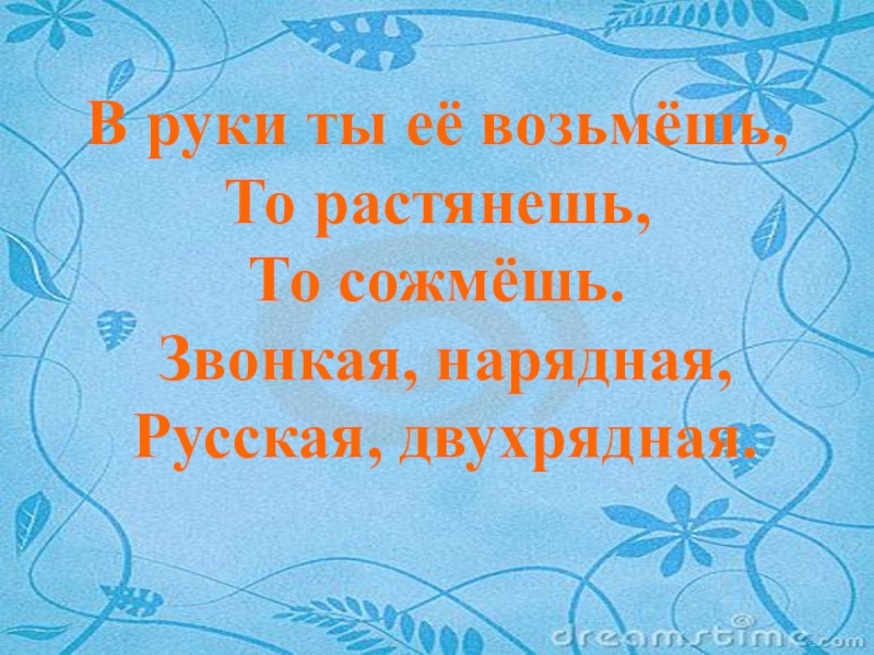 В руки ты её возьмёшь,То растянешь, То сожмёшь. Звонкая, нарядная, Русская, двухрядная.