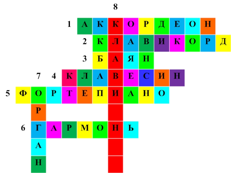Презентация, доклад кроссворд по музыке на темуКлавишные инструменты