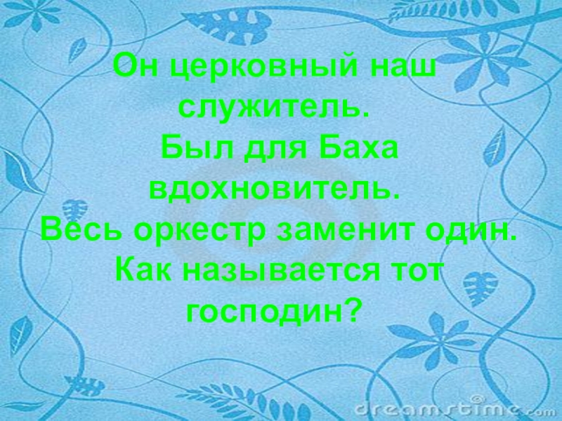 Он церковный наш служитель. Был для Баха вдохновитель. Весь оркестр заменит один. Как называется тот господин?