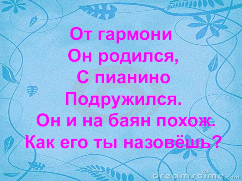 От гармони Он родился, С пианино Подружился. Он и на баян похож. Как его ты назовёшь?