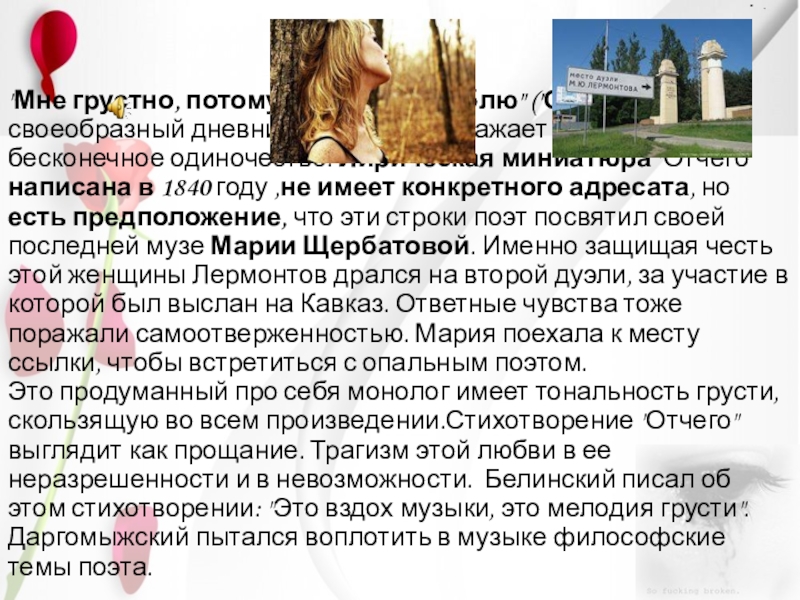 Слайд 20"Мне грустно, потому что я тебя люблю" ("Отчего") - своеобразный дневник,
