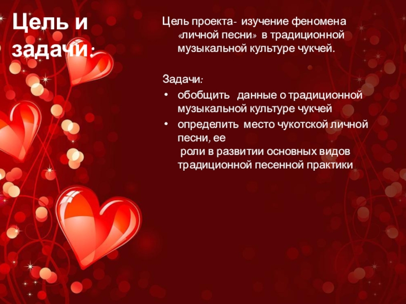 Цель проекта- изучение феномена «личной песни» в традиционной музыкальной