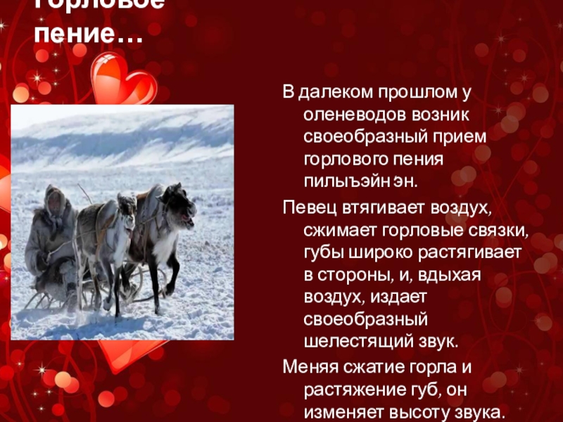 В далеком прошлом у оленеводов возник своеобразный прием горлового пения