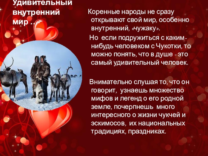 Но если подружиться с каким-нибудь человеком с Чукотки, то можно понять, что в душе - это самый удивительный человек.