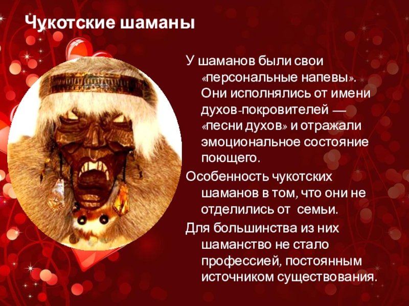 Особенность чукотских шаманов в том, что они не отделились от семьи.